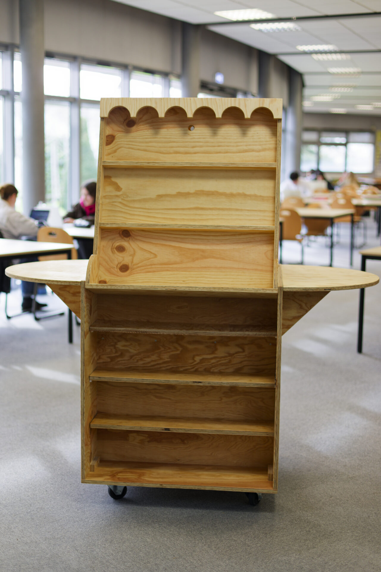 Le 15 janvier 2026 le Meuble Vaisselier a été livré à la Bibliothèque Universitaire de La Roche-sur-Yon. Pour cette dernière année de résidence artistique, ce projet transforme un simple mobilier en espace vivant de rencontre et de partage autour de l’image.