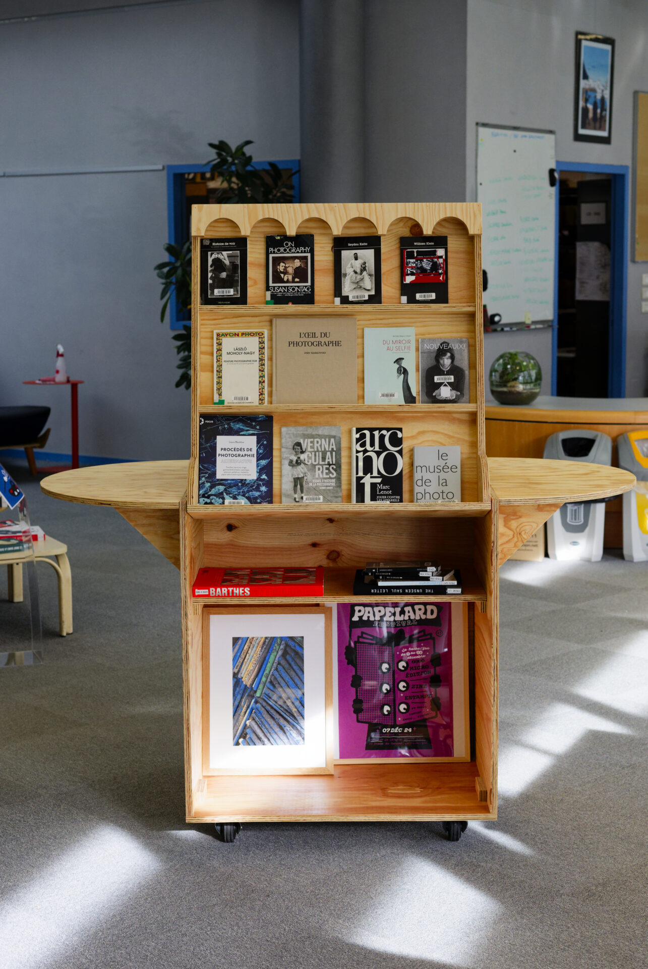 Conçu en collaboration avec Timothée Raison @raisontimothee et superbement réalisé par ses soins, c’est un meuble qui se déploie, un espace qui s’ouvre. Conçu comme un mobilier hybride de stockage et d’exposition, ce vaisselier est avant tout un pop-up spatial : il se déploie dans l’espace comme un point de rendez-vous convivial. Des tablettes qui s’ouvrent, des casiers qui invitent au dialogue, un design modulaire qui réinvente l’exposition éphémère. Il n’est pas figé – il appelle la discussion autour de l’image contemporaine ses usages, ses mémoires, ses appropriations quotidiennes.