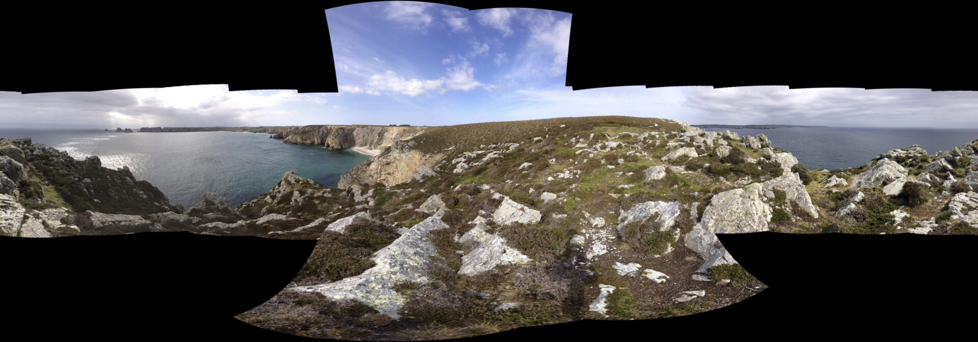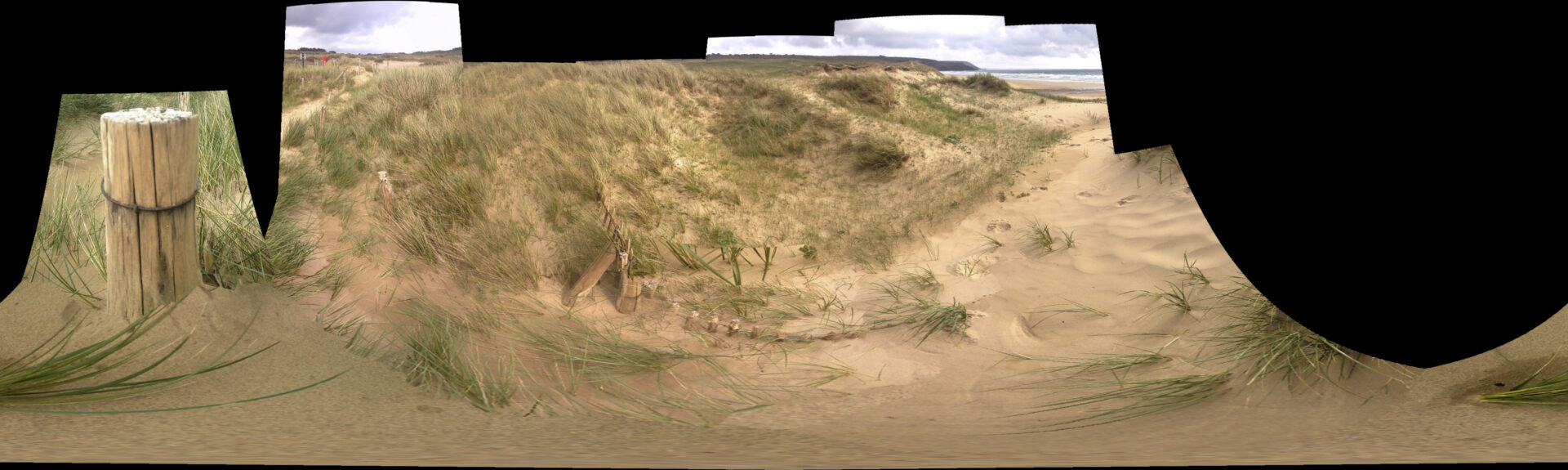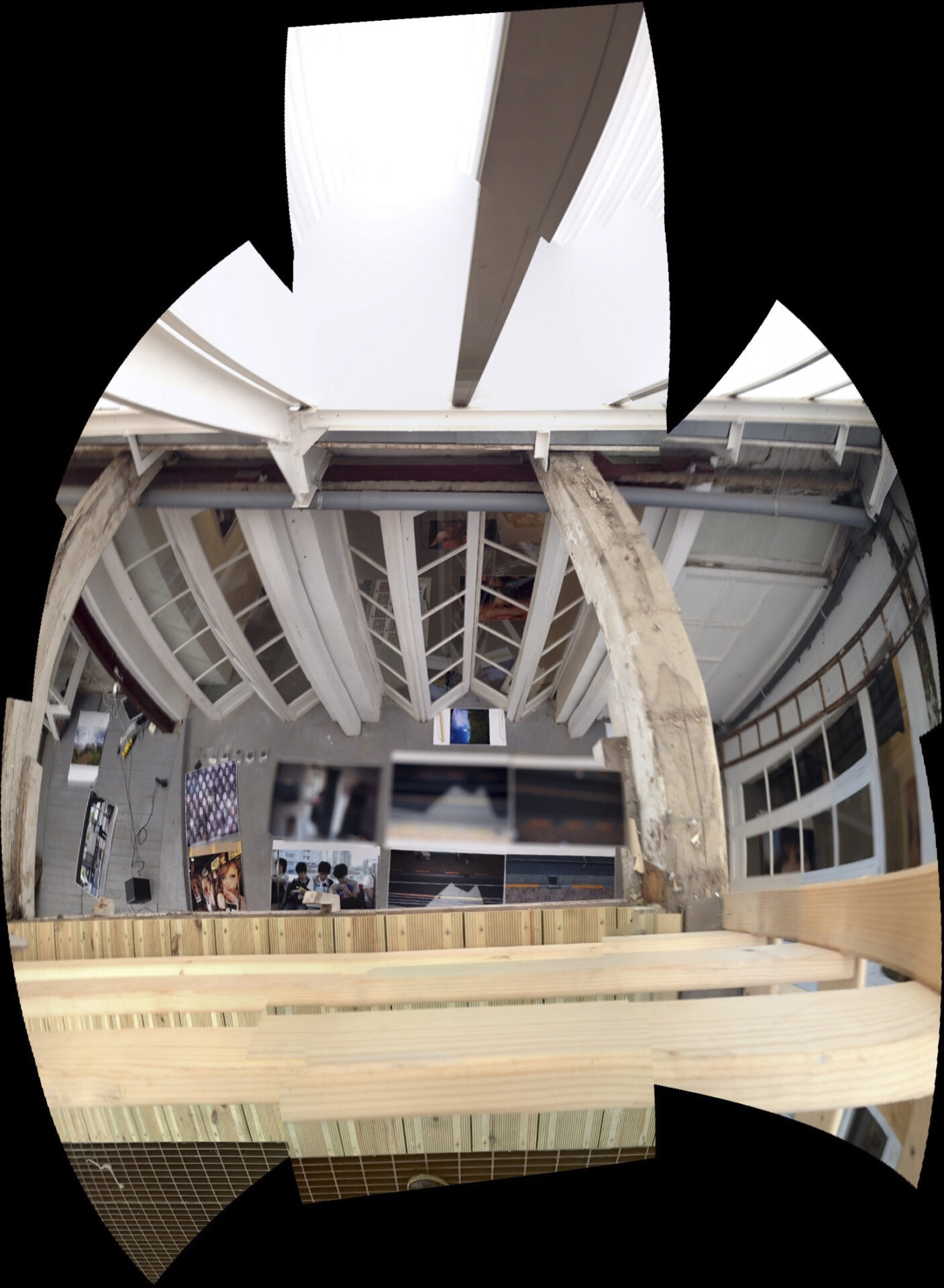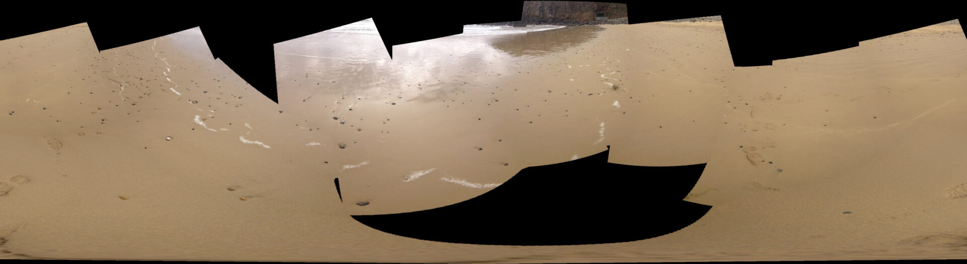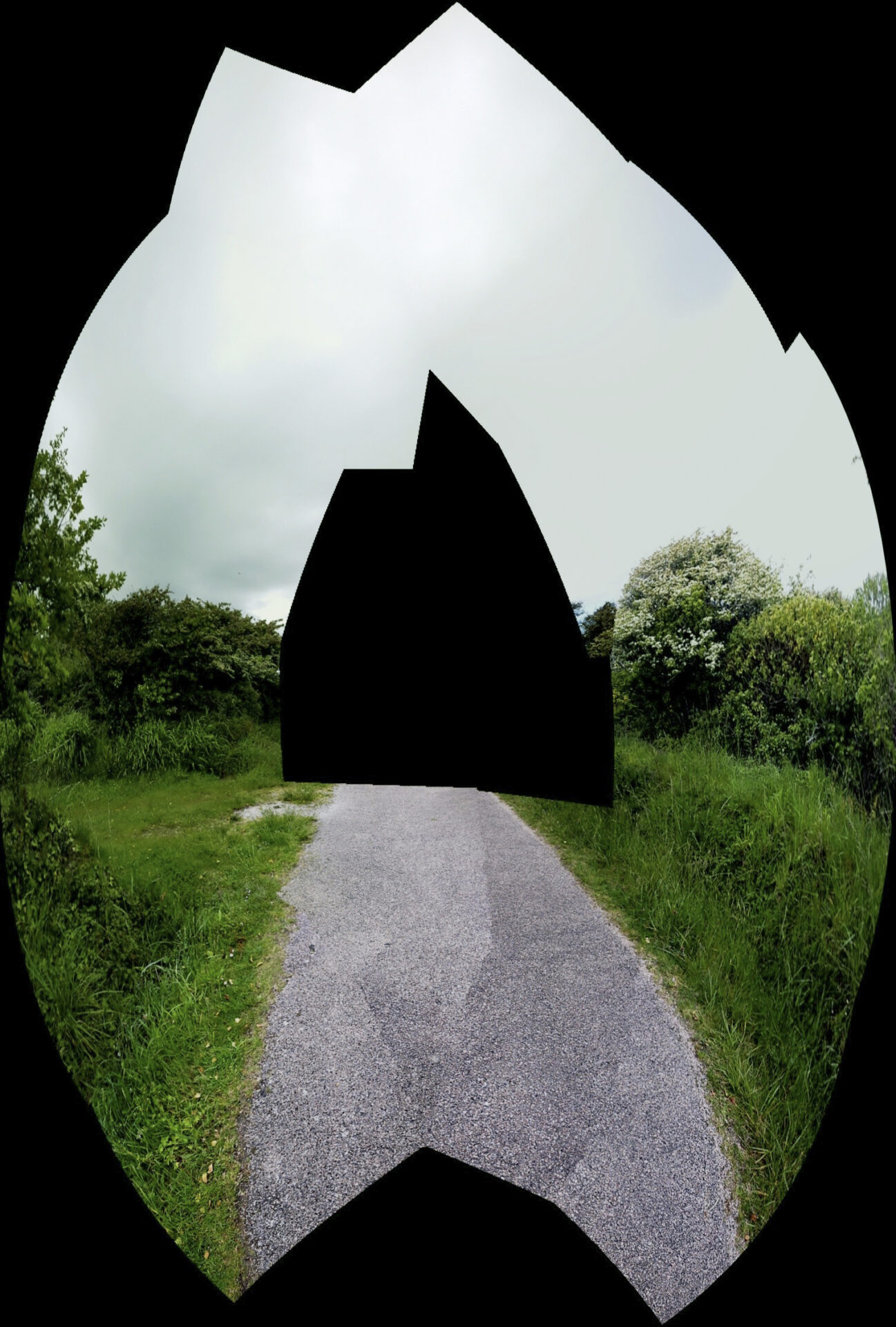 En multipliant volontairement les prises de vue, j’ai provoqué des ruptures dans l’algorithme de panorama, qui tentait malgré tout d’assembler des images incompatibles. Les zones noires, les déformations et les trous de reconstruction sont devenus la matière du projet.