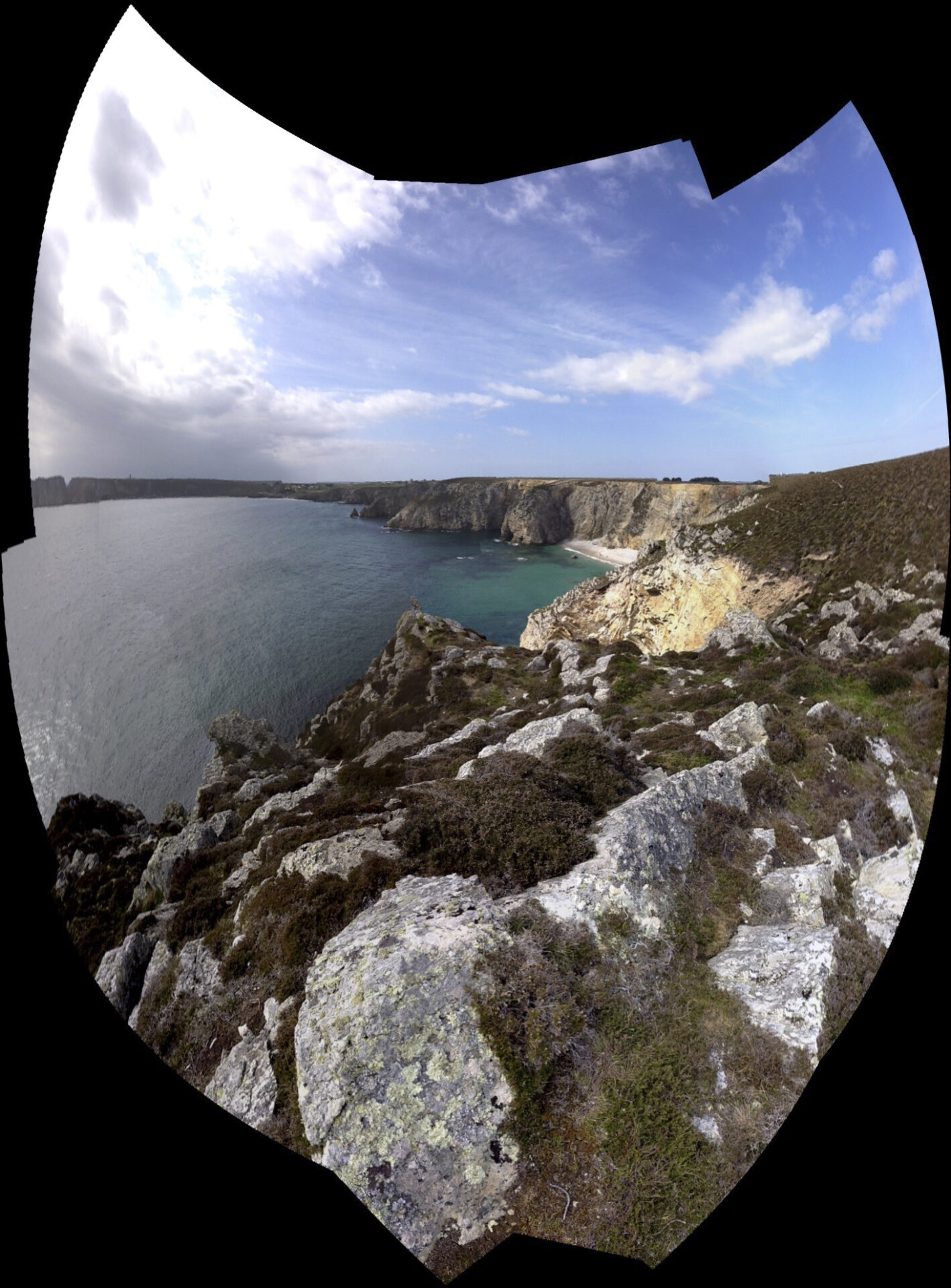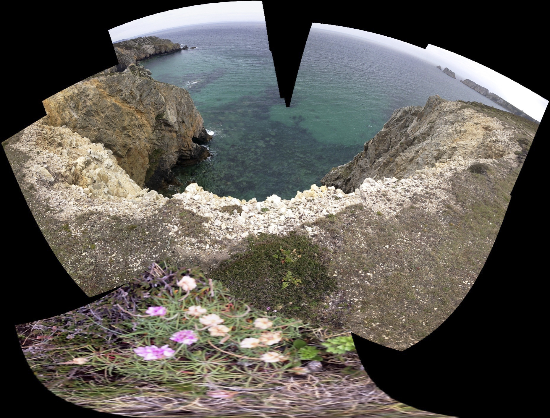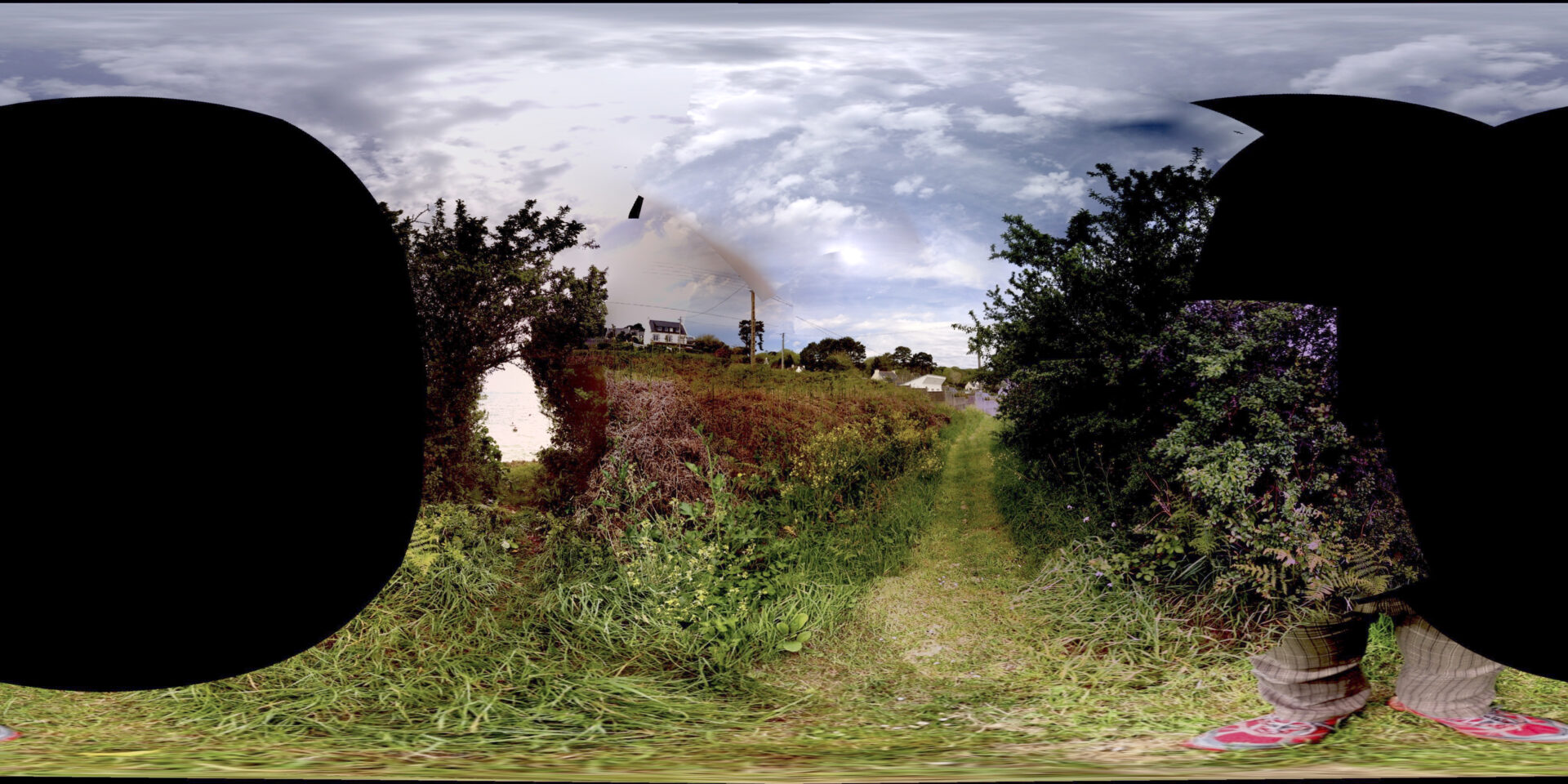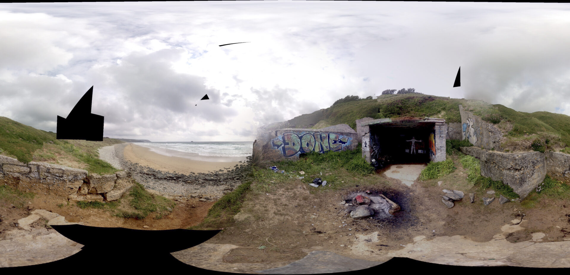 En multipliant volontairement les prises de vue, j’ai provoqué des ruptures dans l’algorithme de panorama, qui tentait malgré tout d’assembler des images incompatibles. Les zones noires, les déformations et les trous de reconstruction sont devenus la matière du projet.